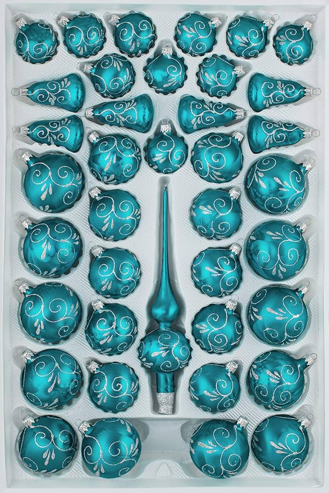 Amazon.de: 39 TLG. Glas Weihnachtskugeln Set in ‘Ice Petrol Türkis