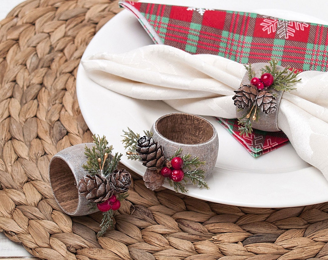 Christmas Napkin Rings With Pinecones Decor Rustic Table Etsy UK