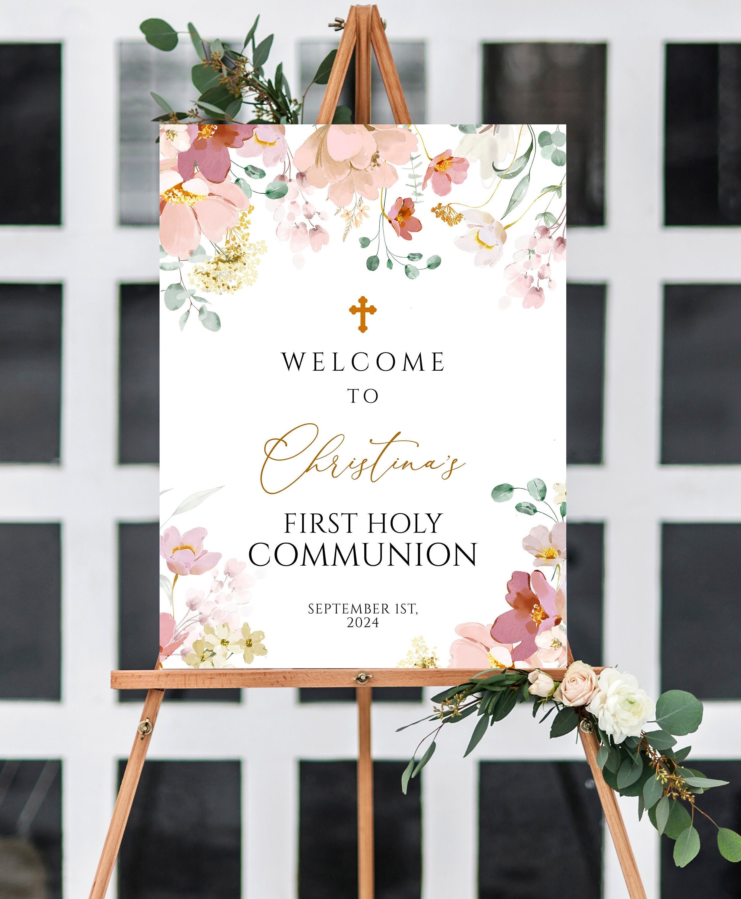 First Communion Welcome Sign EDITABLE Wildflower Baptism Etsy