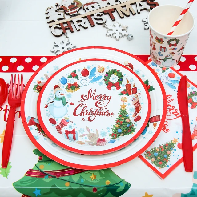Christmas Disposable Tableware Santa Claus Merry Christmas Decor