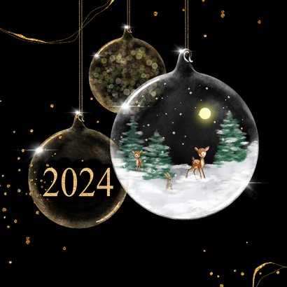 Kerskaart glazen kerstballen met goud | Kaartje2go