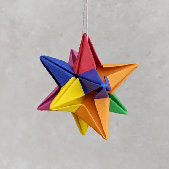 Origami Rainbow Star Decoration Christmas Tree Bauble Eco Etsy